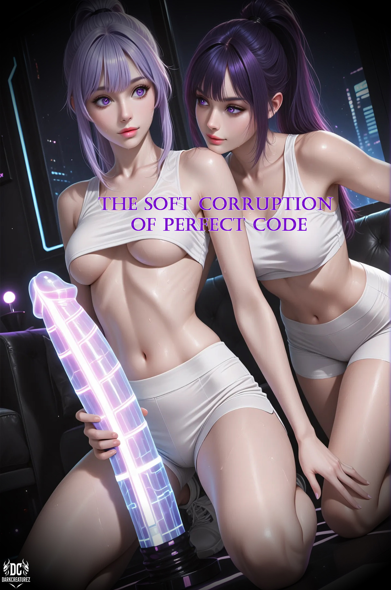 Across the city, Lyrielle watches the same storm rolling in before heading out to meet her. When she finally arrives, the storm has reached its peak. With thunder shaking the skyline and energy filling the air, the quiet evening quickly turns playful as both cyberelves lose their restraint and surrender to the electric mood of the night.